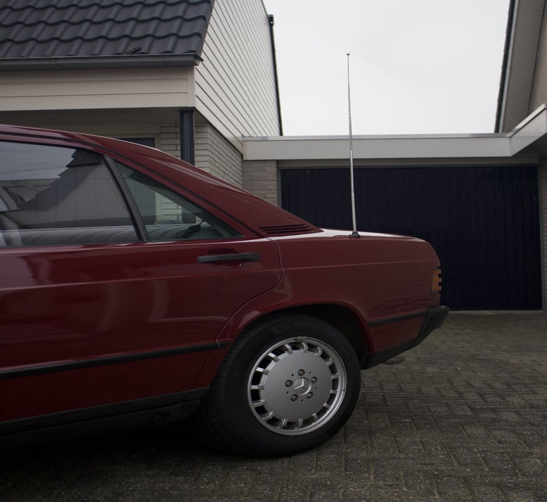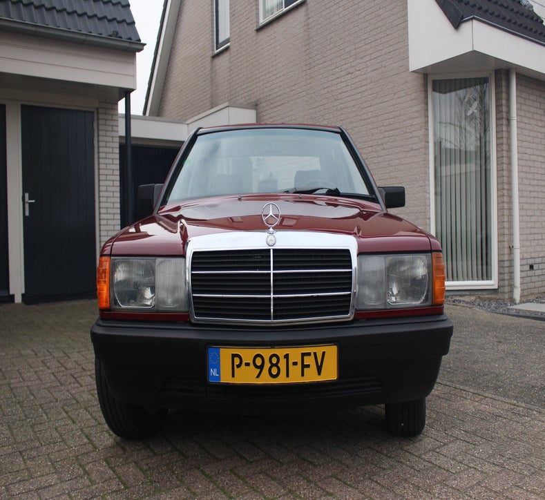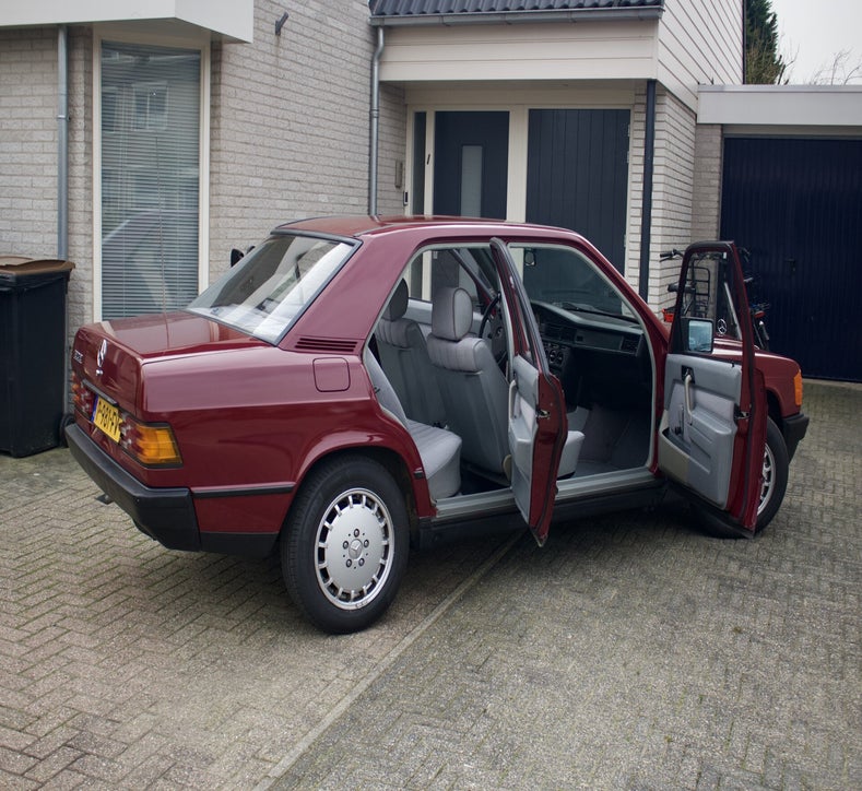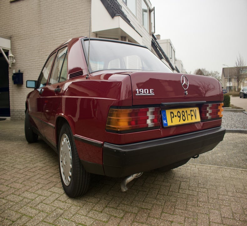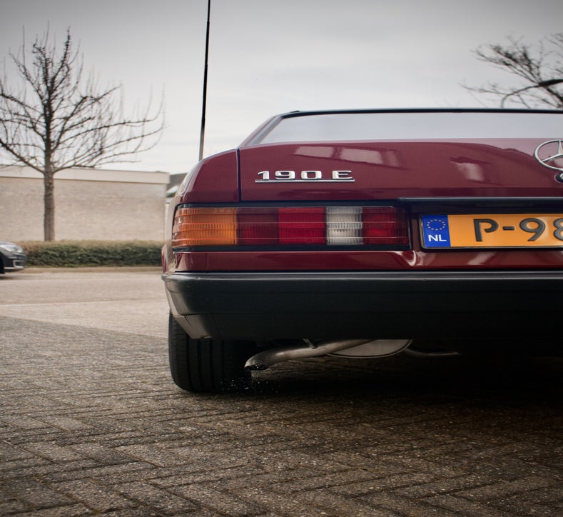 Deze 1985 Mercedes-Benz 190 E bevindt zich in orginele staat. Het lakwerk is uniek en ziet men niet vaak verschijnen op de Nederlandse wegen. Tijdens een mooie zonnige dag komt het diepe rood fantastisch tot zijn recht. Mede door zijn afkomst is de auto helemaal hard, het Spaanse klimaat heeft de auto van roest weerhouden.