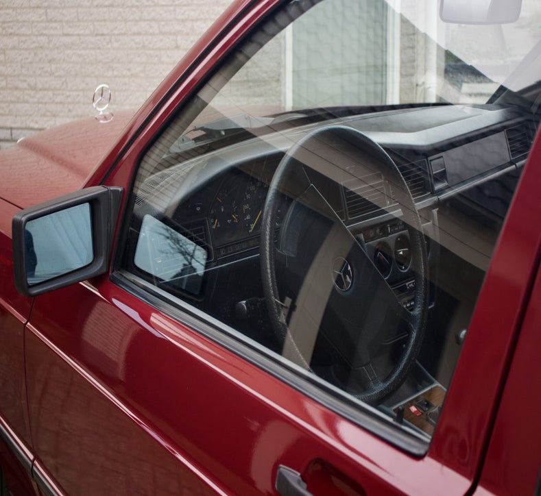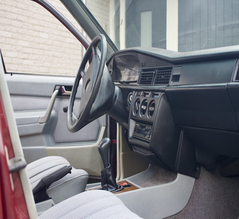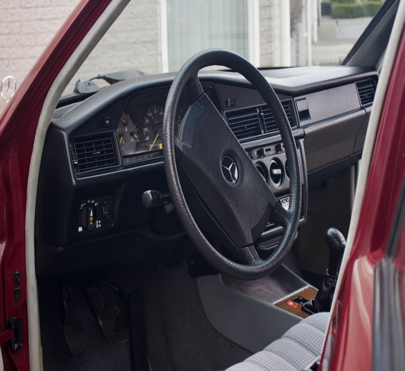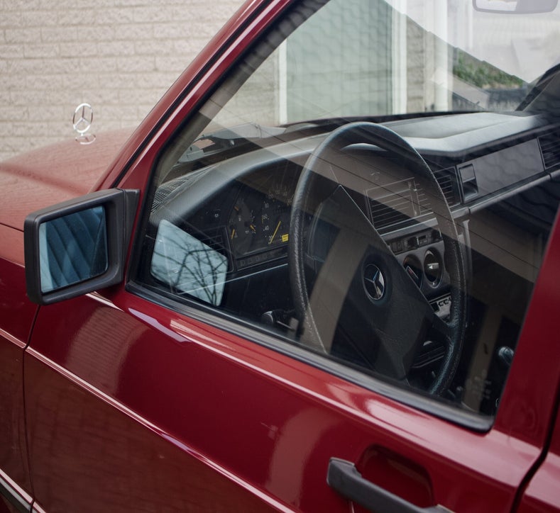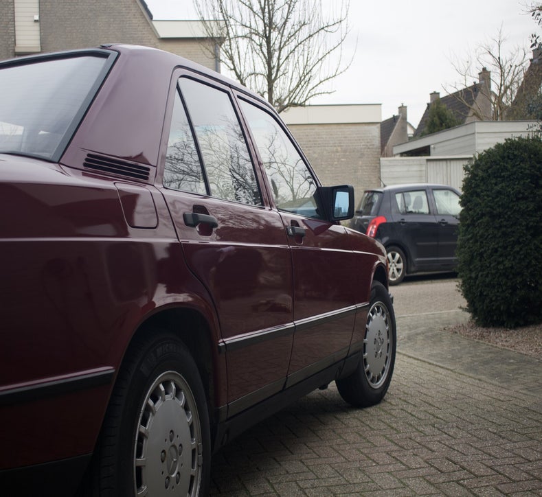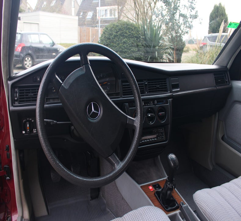 Deze 1985 Mercedes-Benz 190 E bevindt zich in orginele staat. Het lakwerk is uniek en ziet men niet vaak verschijnen op de Nederlandse wegen. Tijdens een mooie zonnige dag komt het diepe rood fantastisch tot zijn recht. Mede door zijn afkomst is de auto helemaal hard, het Spaanse klimaat heeft de auto van roest weerhouden.